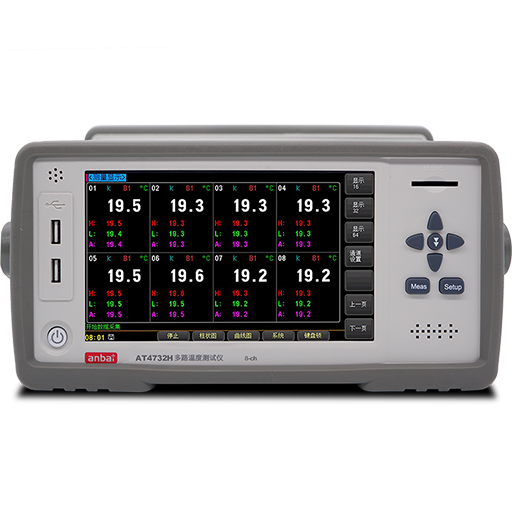 AT47H高压温度仪系列(AT4708H,AT4716H,AT4724H,AT4732H)多路高压温度测试仪采用高性能ARM微处理器控制,7英寸彩色液晶屏显示,触摸屏操作,方便查看温度值,温度变化曲线,柱状图等,可同时对多路温度数据进行采集,上超下超报警和通讯传输,AT47H系列可采集32路温度数据,兼容K/N/E/J/T/R/S/B型热电偶,响应速度快,数据稳定,同时具备断偶检测功能。每通道可单独设置,独立校正。