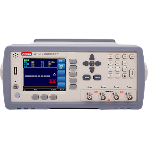 AT516 直流电阻测试仪,采用高性能 ARM 微处理器控制的全自动实时检测的微型台式仪器。仪器具有 0.05%的准确度和 1μΩ~20MΩ的测量范围。电阻值以 5 位显示,具有 30000 读数,采样速度为 7ms。仪器内置温度补偿接口,用来补偿因为温度所引起的误差。